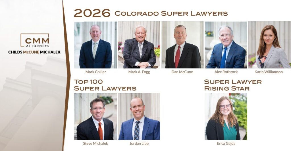 For 2025, four Childs McCune attorneys are recognized as Colorado Super Lawyers: Dan McCune, Mark Fogg, Karin Williamson, and Mark Collier.